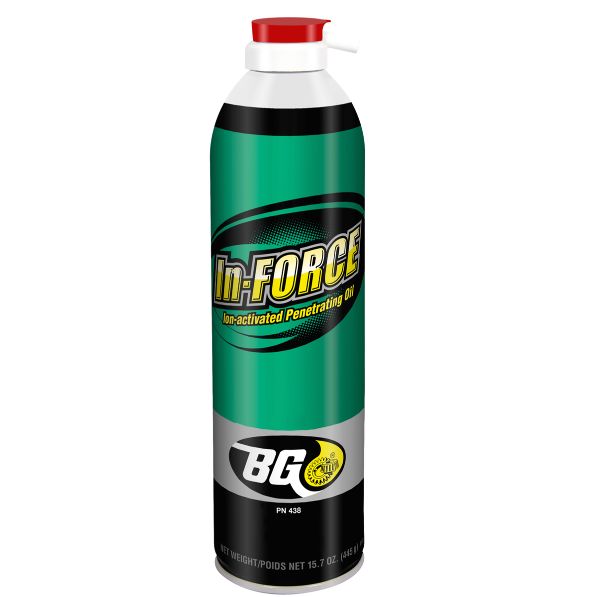 BG In-Force on ioniaktivoituva tunkeutuva voiteluöljy, joka pysäyttää ruosteen ja voitelee sekä irrottaa kiinni juuttuneet osat. Se sopii hyvin myös käytettäväksi kokoonpanossa. Sitoutuessaan metalliin se muodostaa suojaavan ja voitelevan kalvon, jota muut korroosion estoaineet parantavat.