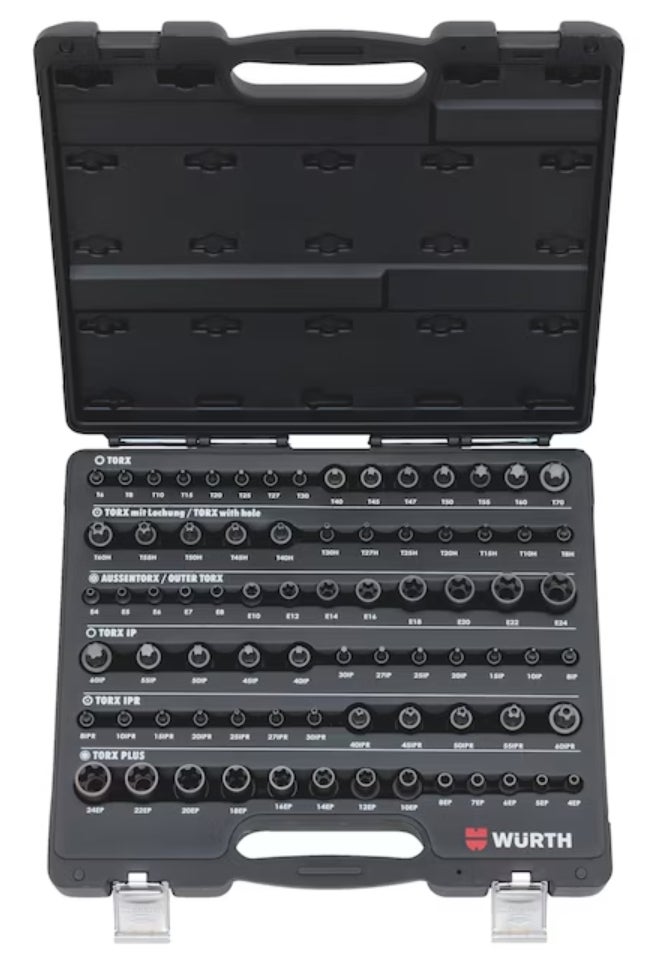 Hylsyaivaimet TX-ruuveille tukevassa ja käytännöllisessä muovisalkussa liikkuvaan ja korjaamokäyttöön